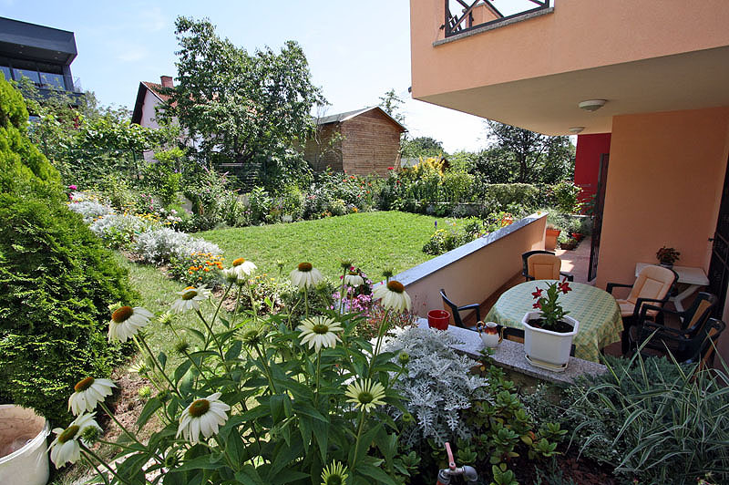 It consists of 3 bedrooms with access to garden and terrace (east), living room with dining area, fully equipped kitchen, 2 bathrooms (shower, tub), hallway, balcony, terrace, maintained garden (150m2), parking space and a garage.
